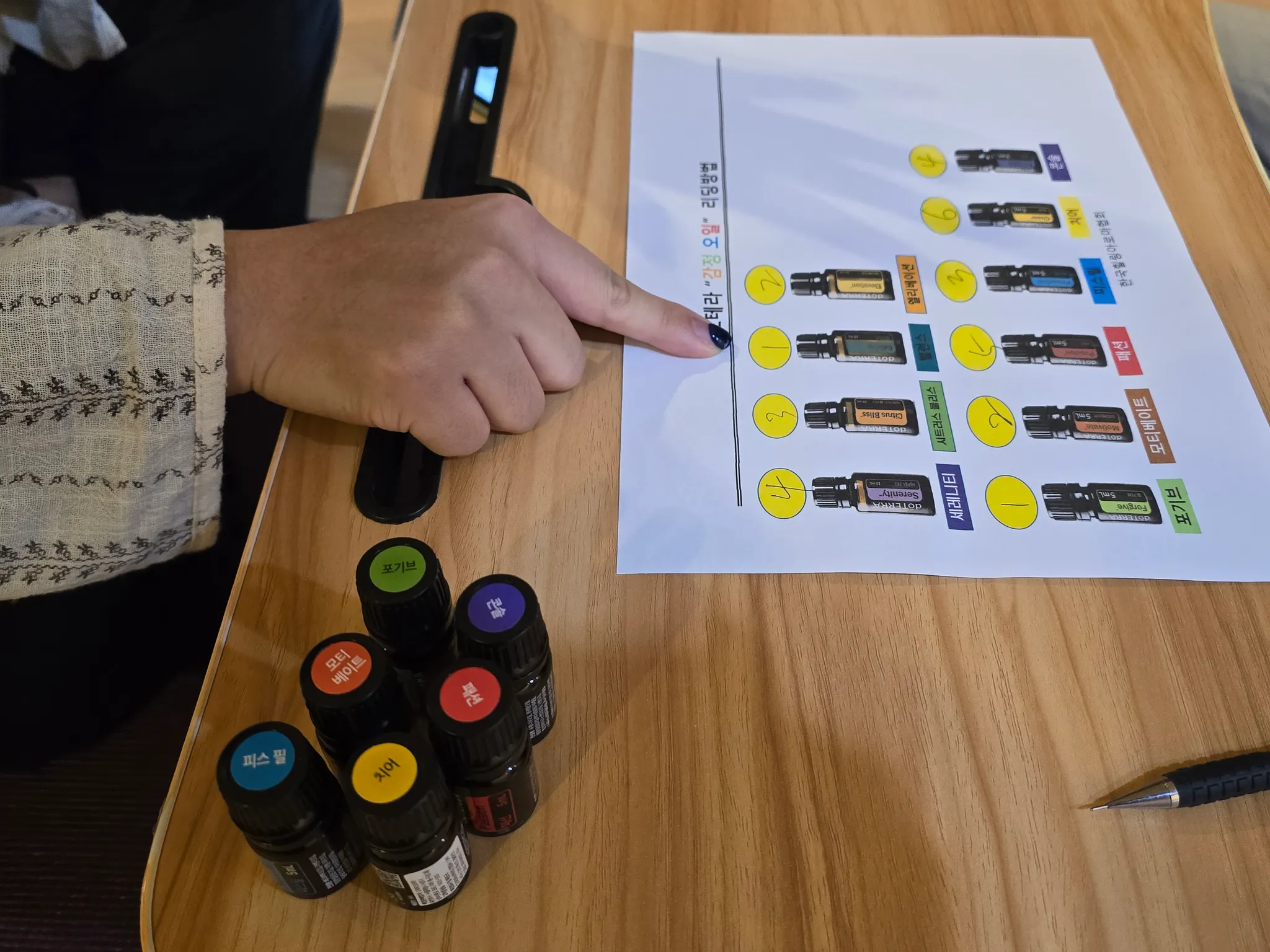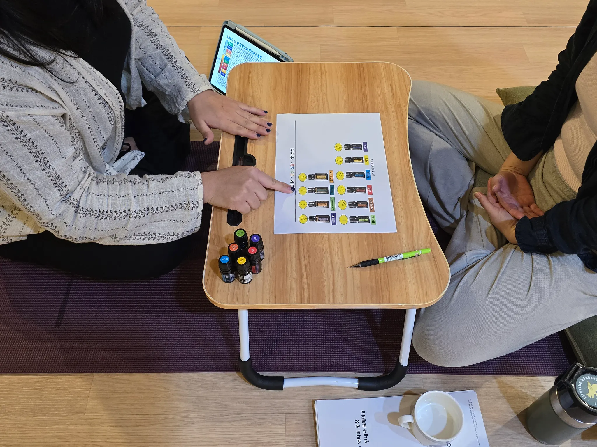 아로마 오일과 차를 통해 참가자들이 자신의 감정 상태를 점검하고 스트레스를 해소하는 데 도움을 줍니다. 천연 아로마 오일의 향기와 따뜻한 차를 마시는 과정을 결합하여 심신을 진정시키고, 명상을 통해 내면의 평화와 균형을 찾을 수 있도록 설계되었습니다. 참가자들은 이 과정을 통해 일상에서 벗어나 심신의 이완을 경험하고, 자기 돌봄과 재충전의 기회를 가질 수 있습니다. 이는 현대인의 바쁜 일상 속에서 쉽게 활용할 수 있는 심리적 힐링과 자기 돌봄의 방법입니다.