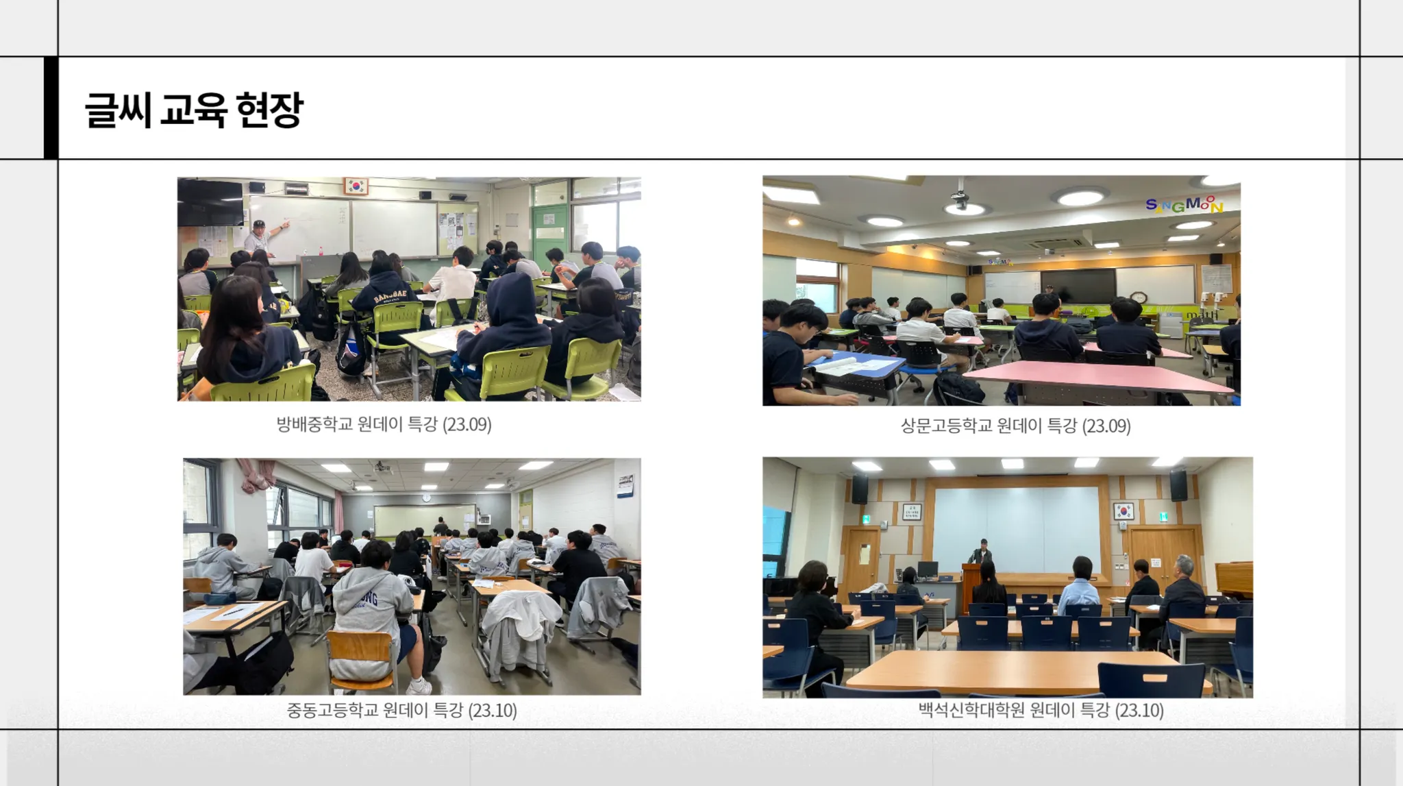 기존의 한글 학습법과 달리 본 클래스는 과학적인 한글 학습법으로 던 4개의 선을 활용한 레고 조립법으로 모든 한글 표현이 가능하며, 남녀노소 누구나 손쉽게 배우고 적용할 수 있는 글씨 교정법입니다.
