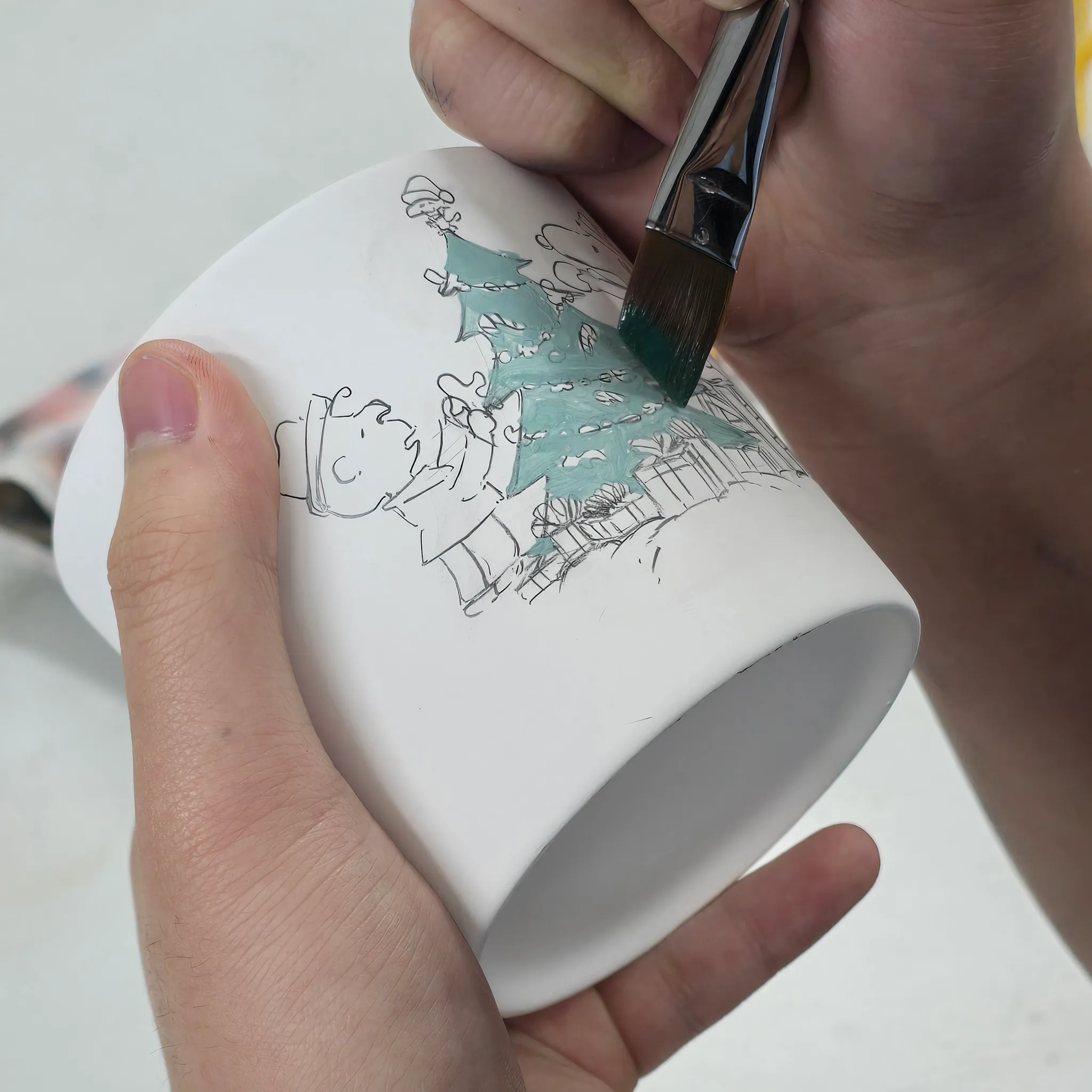초벌 도자기 전용 특수 물감으로 채색해줍니다.
