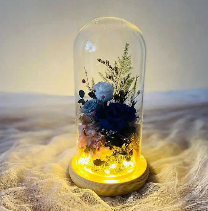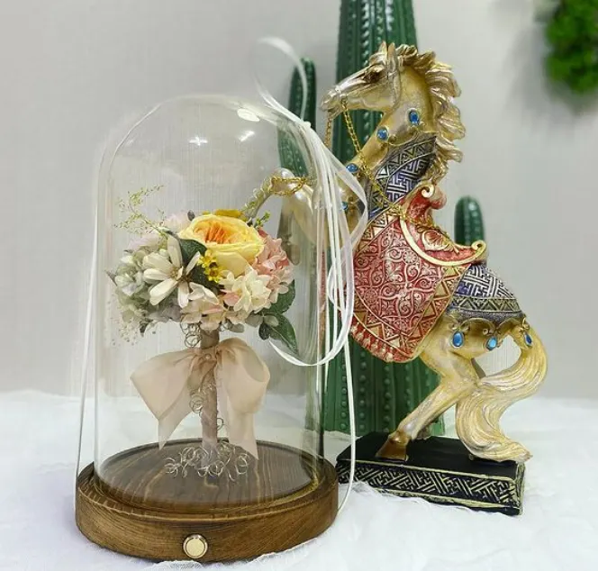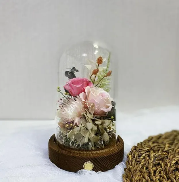 와이어 처리한 플라워를 이용하여 유리돔에 꽃꽂이