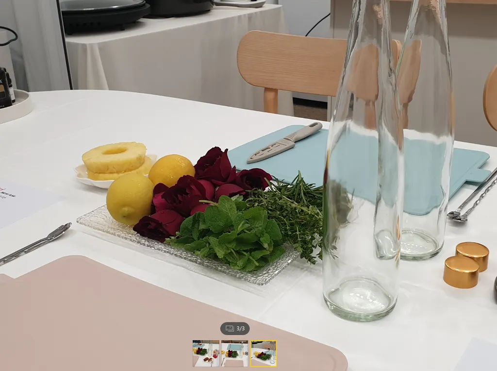 준비된 재료를 보며 재료의 특성과 코디얼 만드는 방법을 설명해드립니다.