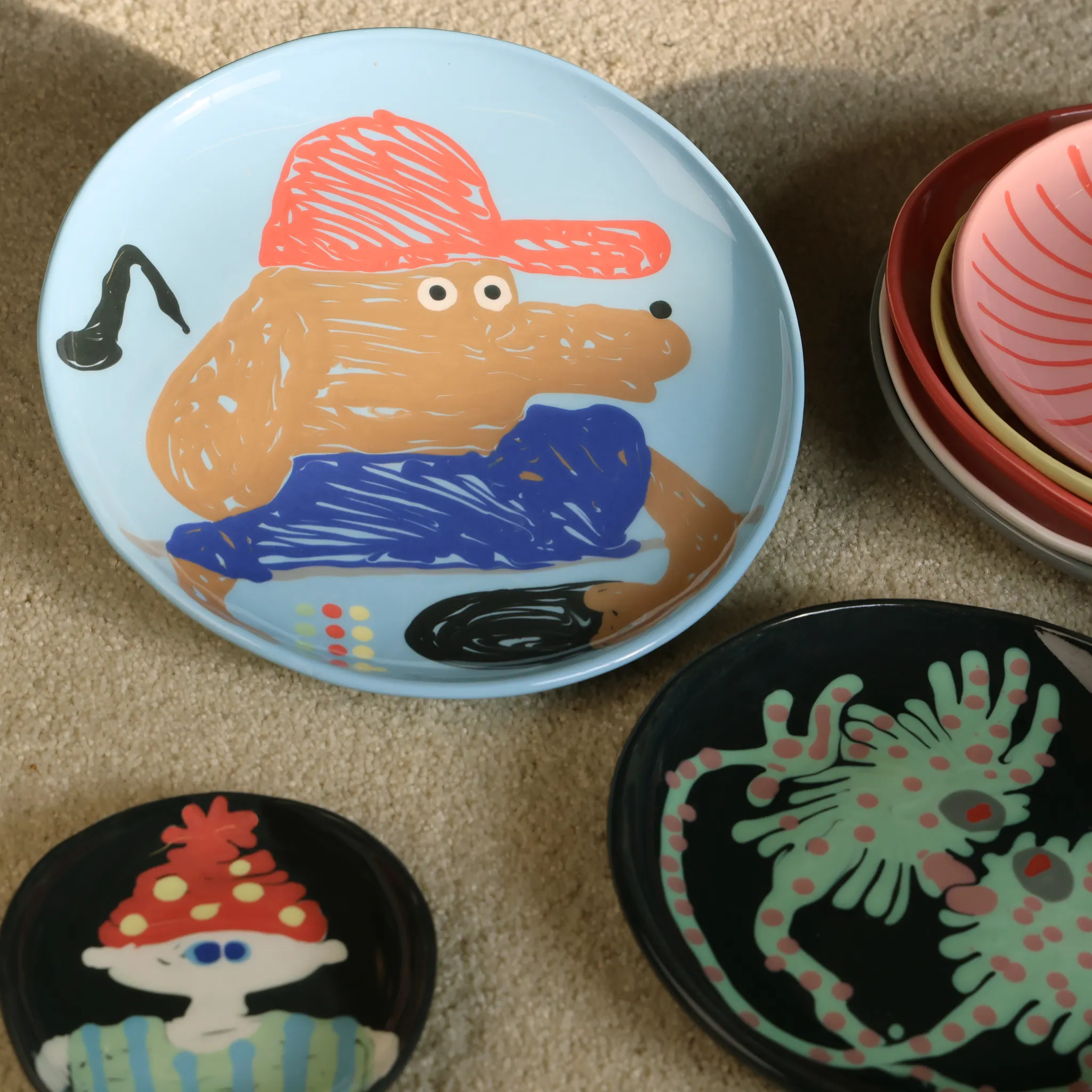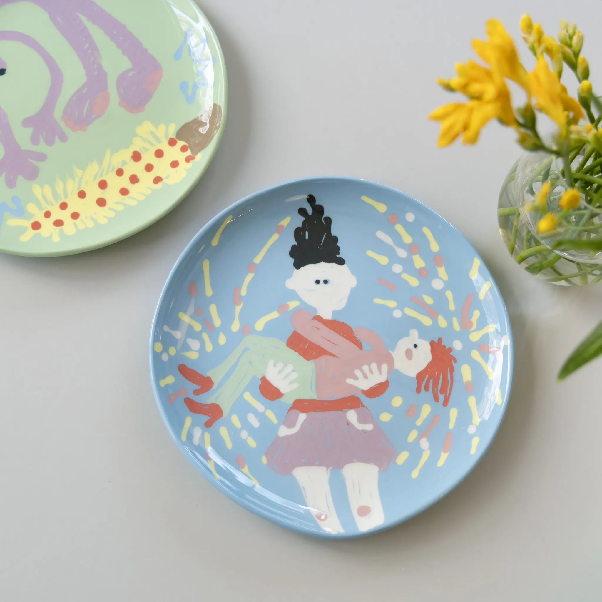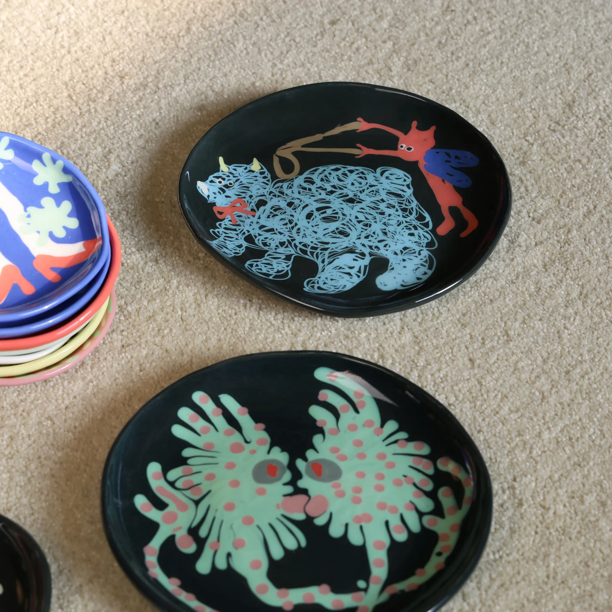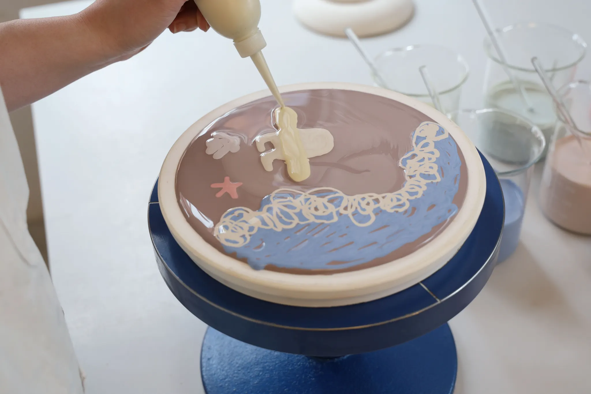 원하는 색깔의 흙물을 부으면서 문양을 새기거나 그림을 그려요.