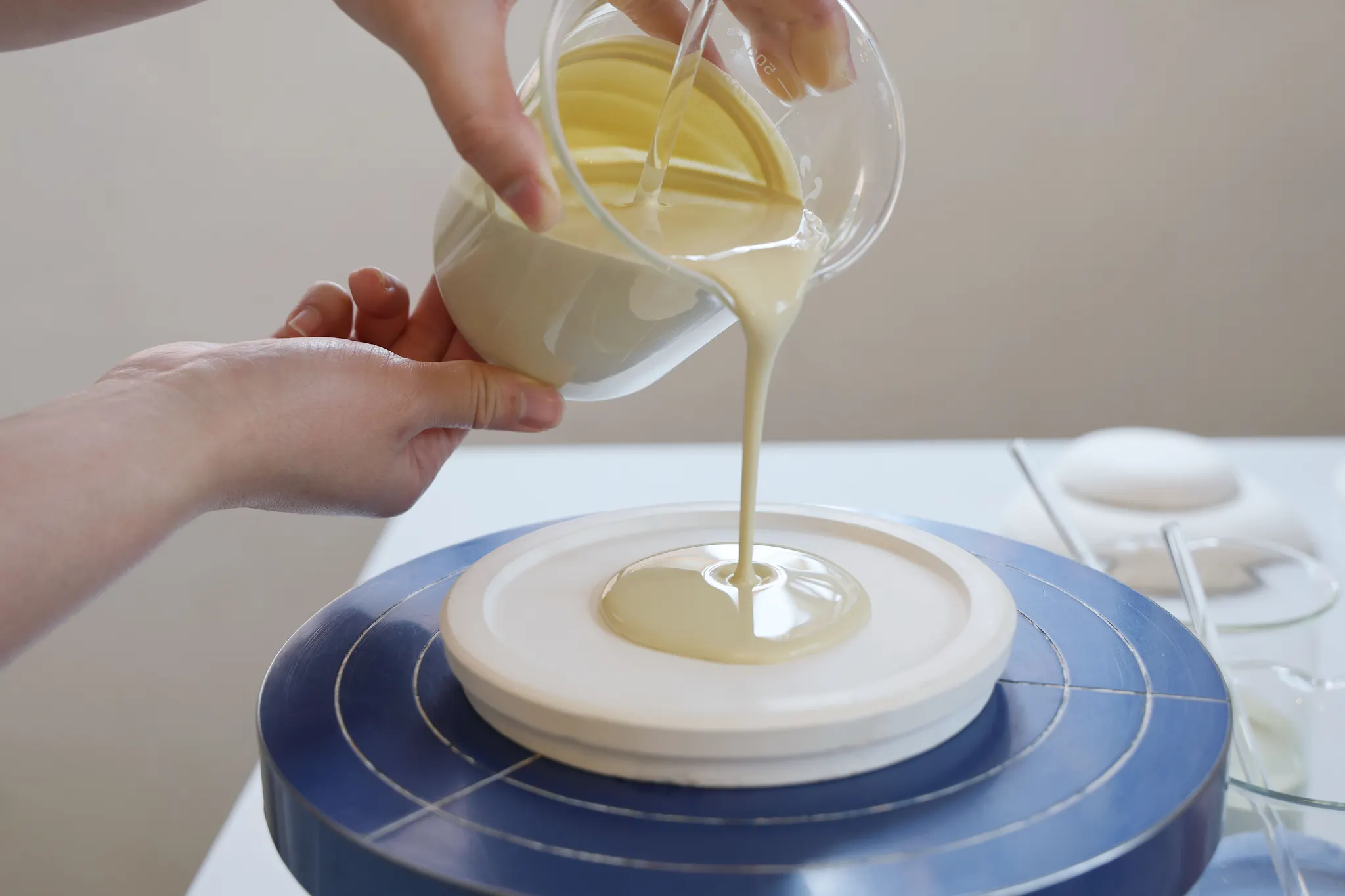 적당히 건조되길 기다렸다가 틀에서 떼어내고, 다른 틀에 얹어 모양을 잡아요.