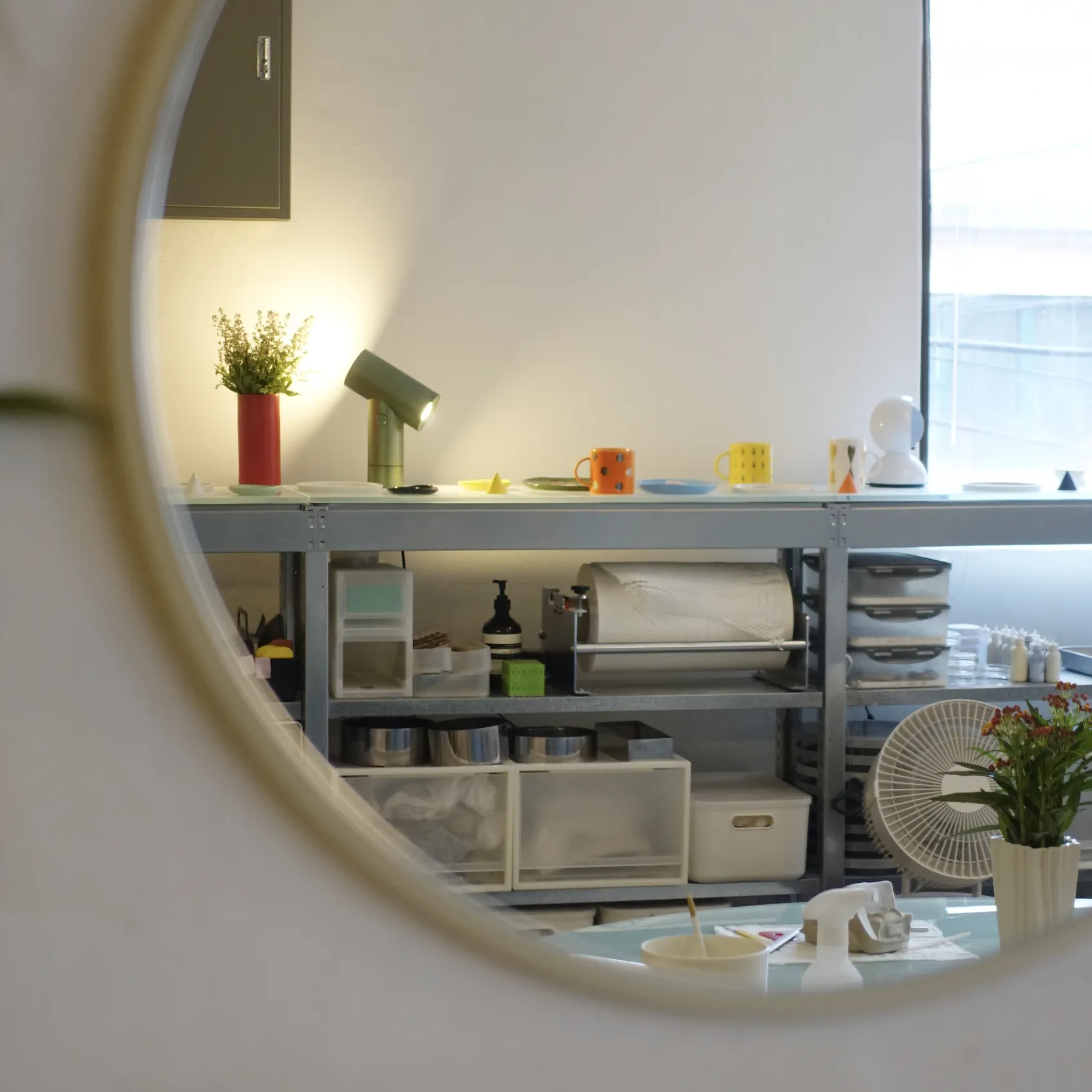 작업 과정에 대한 설명을 듣고 디자인을 고민해요.