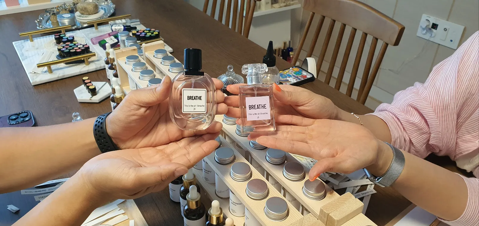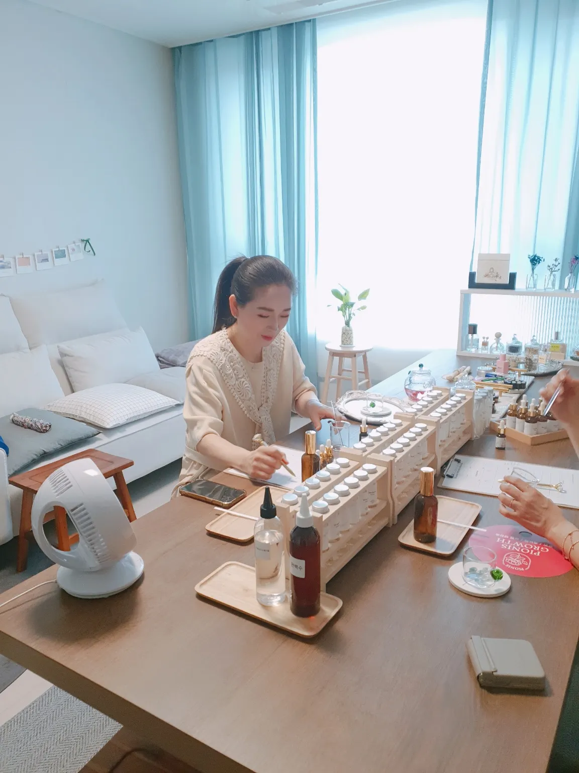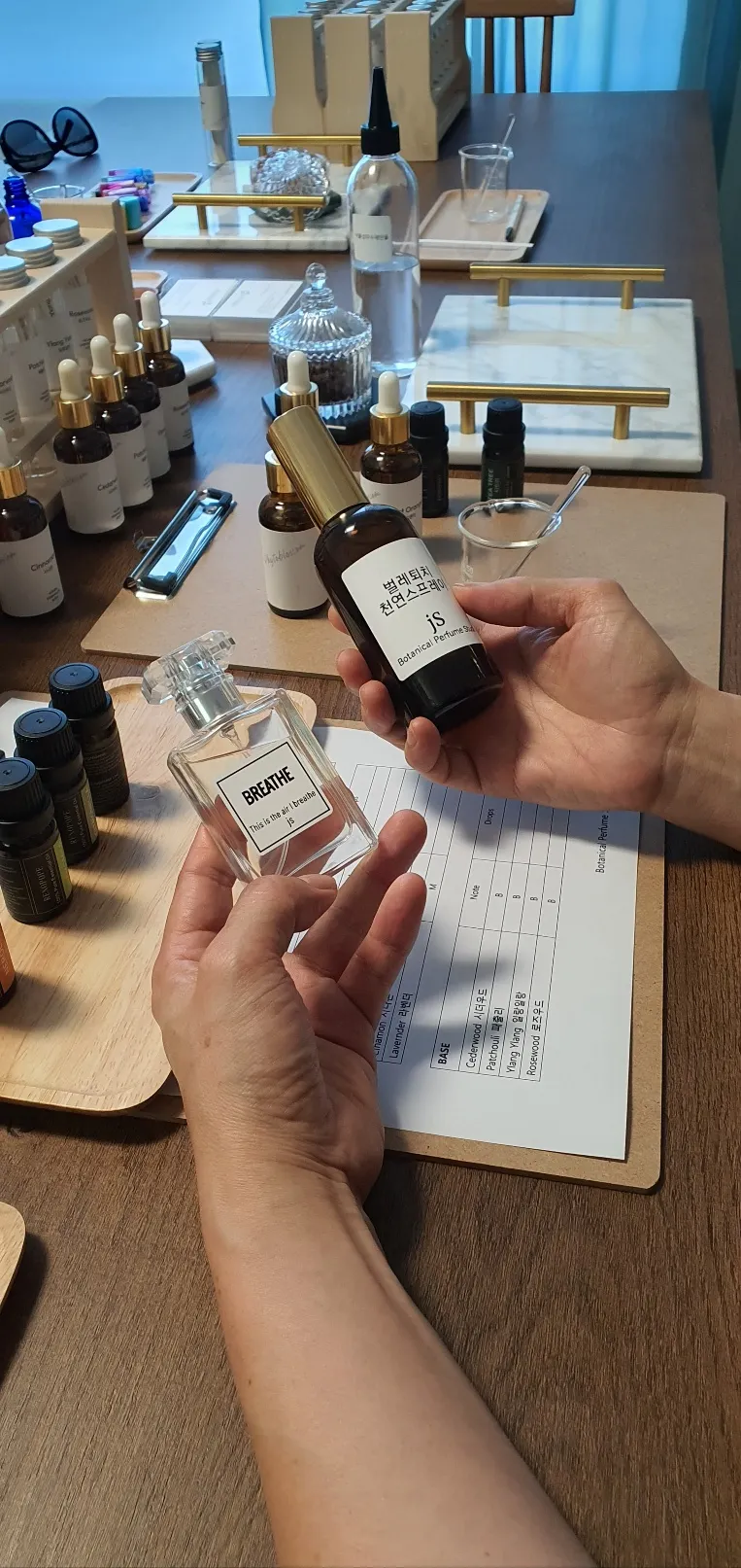천연에센셜 오일을 충분히 시향하며 끌리는 향기들을 선별합니다.