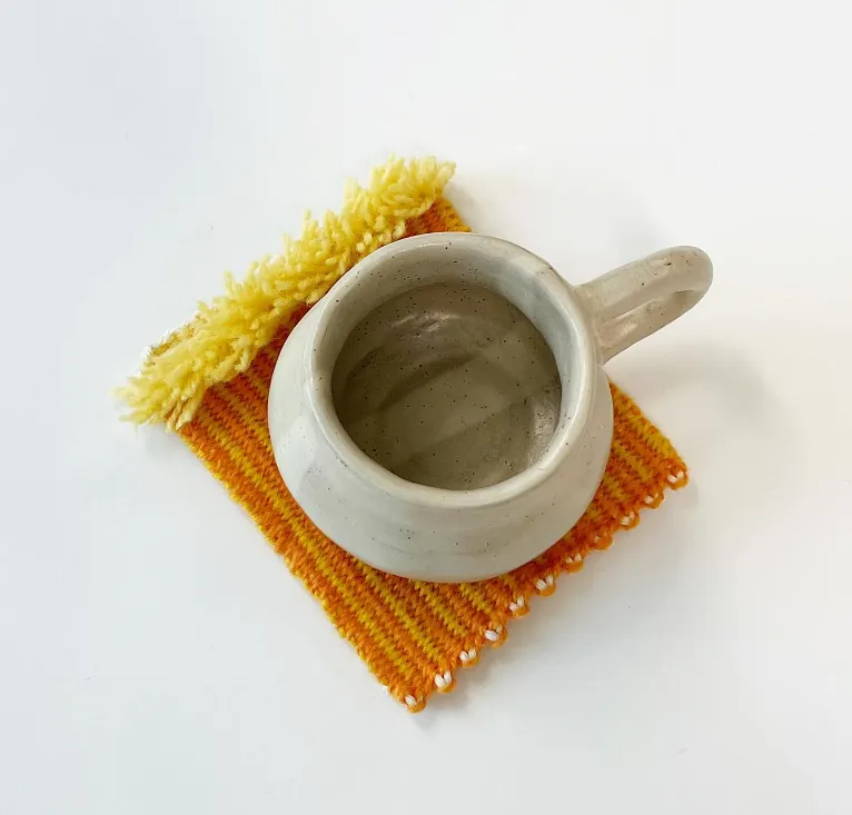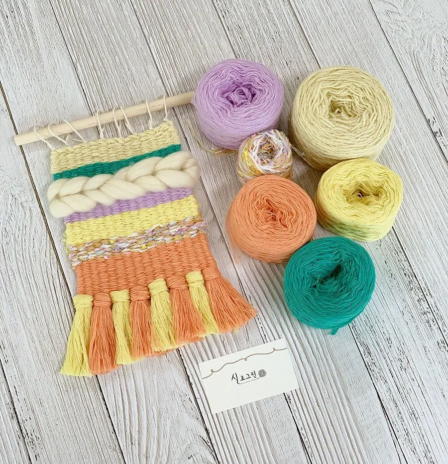 • 원하는 사이즈로 실을 올리면, 매듭을 짓고 틀에서 작품을 빼줍니다.