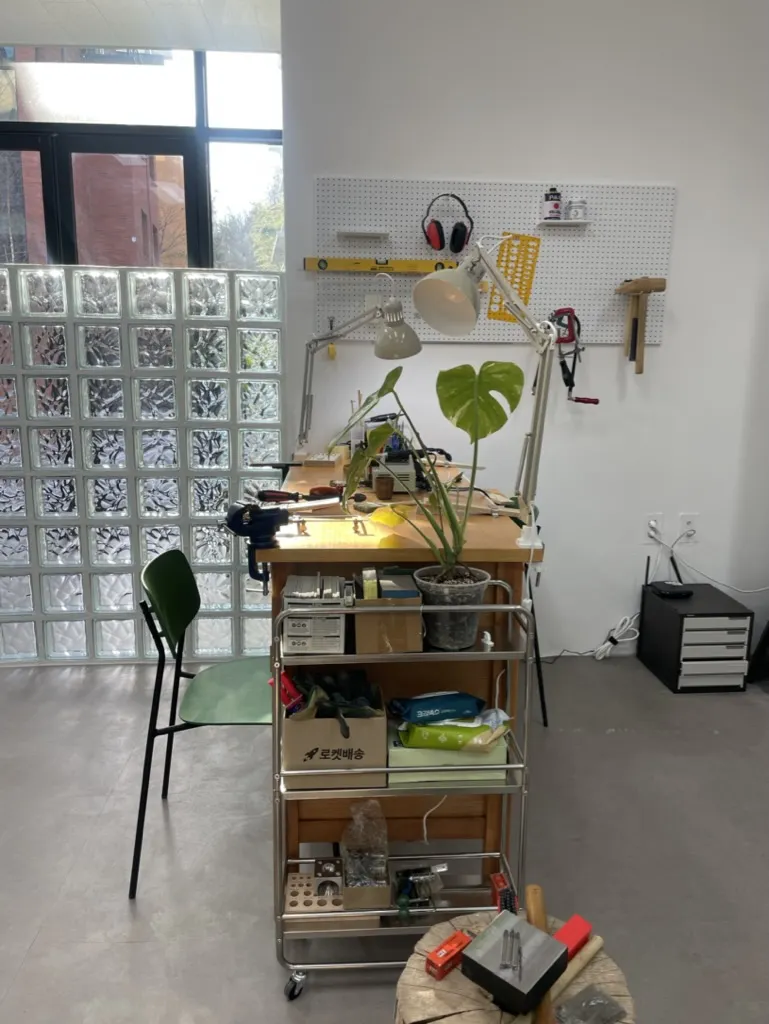 자신의 사이즈에 맞게 반지모양을 만들어 준 후 인두기로 붙여줍니다.