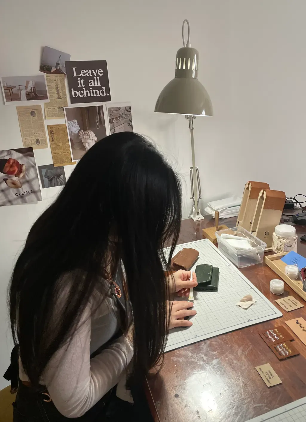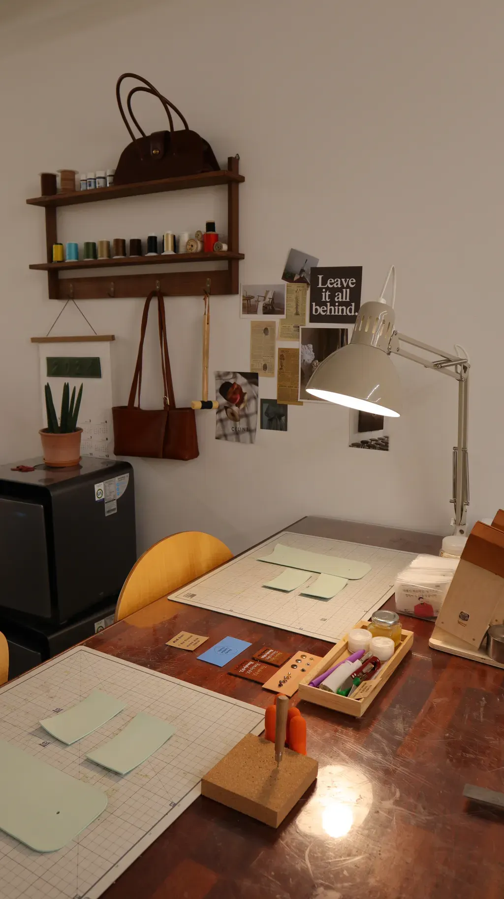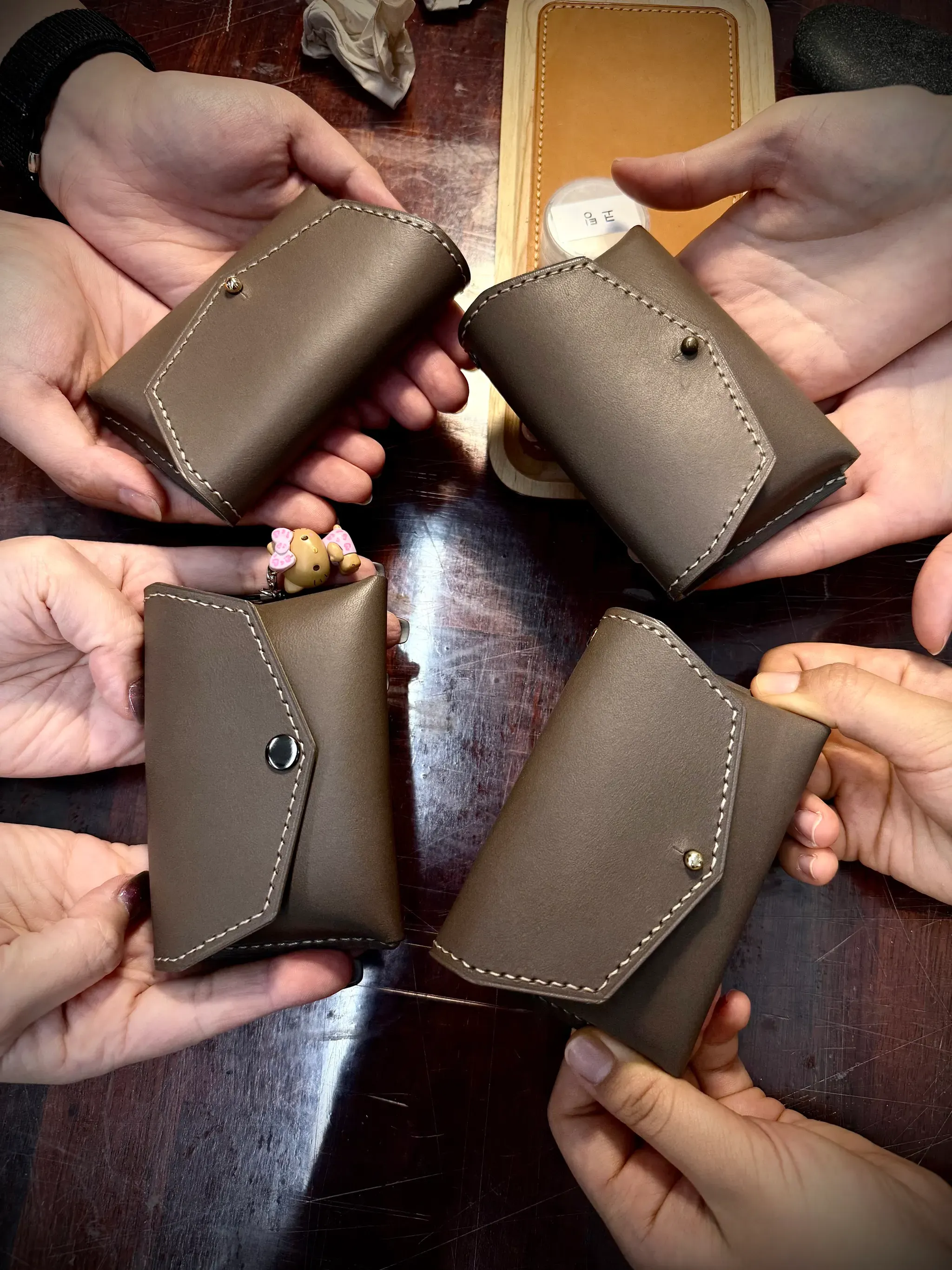 가죽용 접착제를 바르고 가죽을 (조립)부착 합니다.