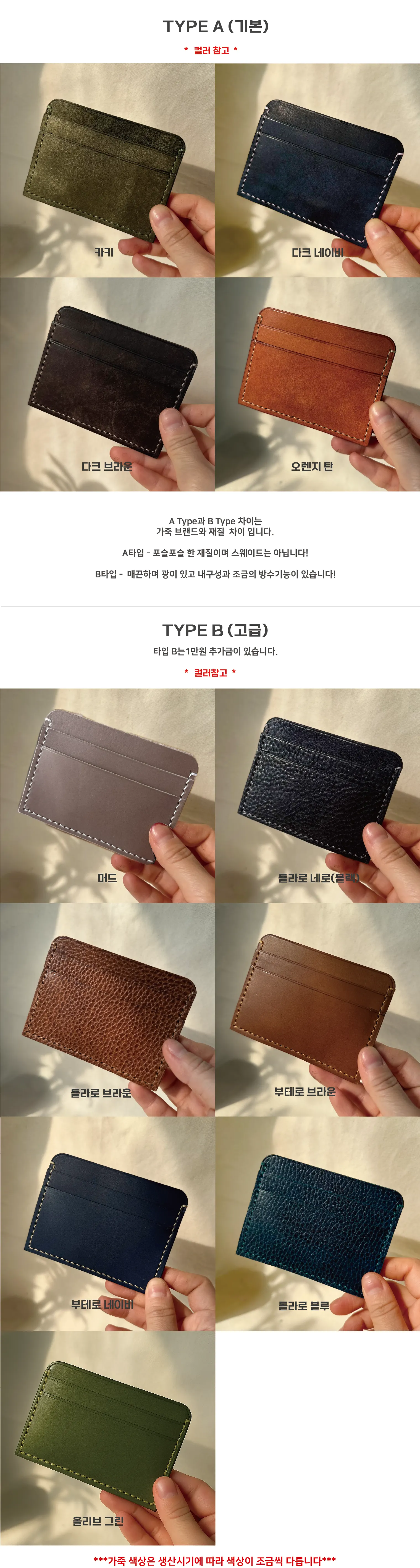 체험전 미리 가죽의 색상을 선택 합니다. (사전 재단 진행용)