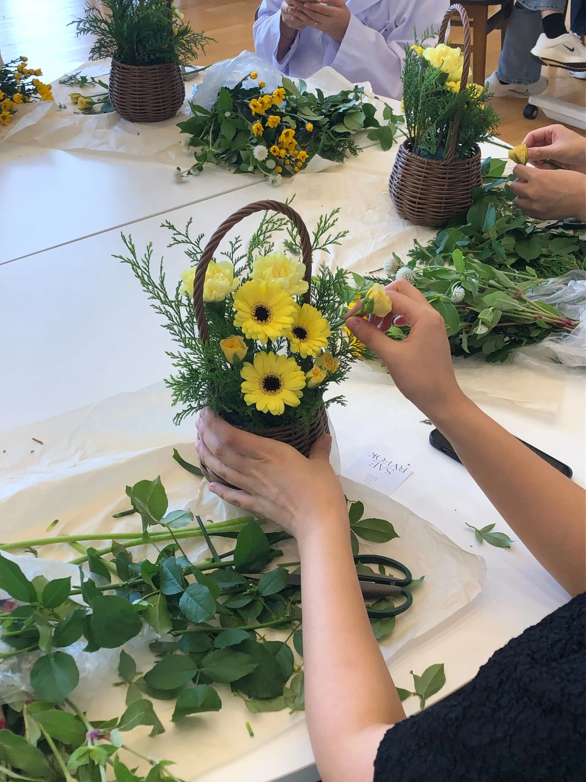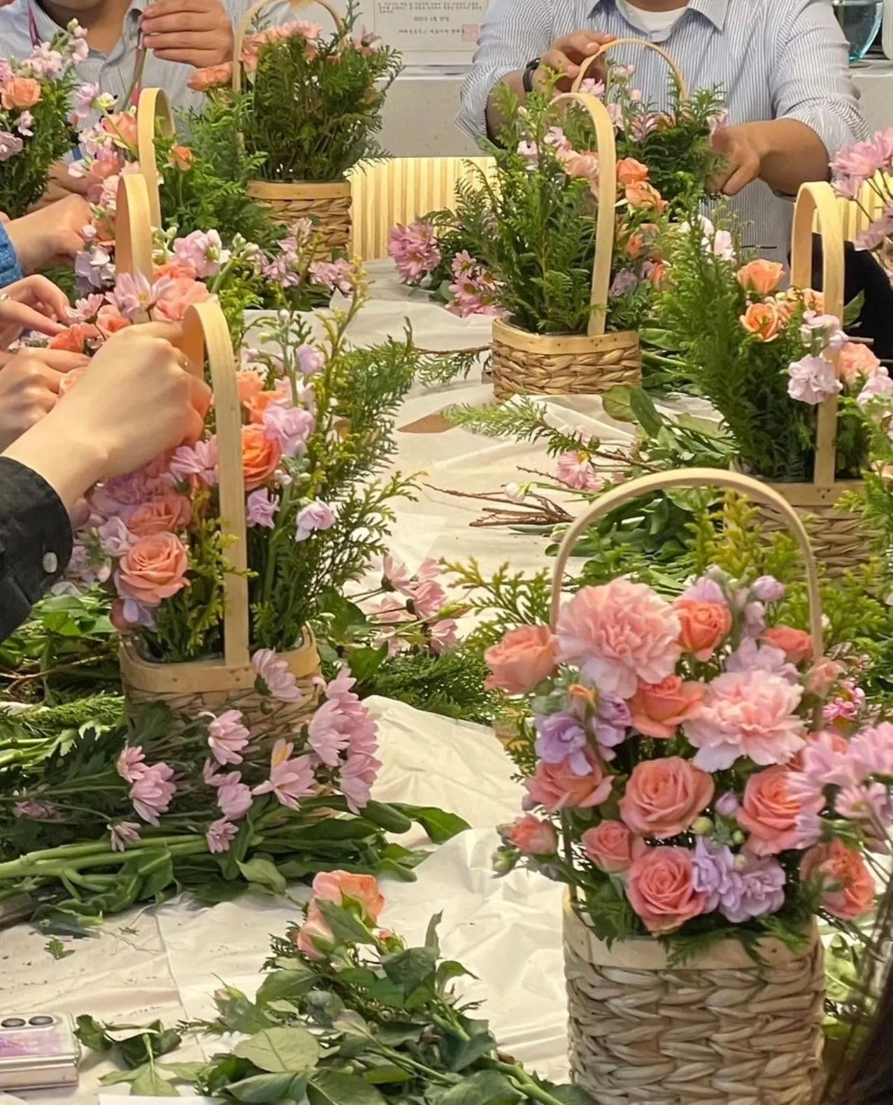강사님의 코칭을 받으며 바구니에 꽃을 조화롭게 꽂아봅니다. 자신만의 감성을 담아 하나뿐인 정원을 완성합니다.