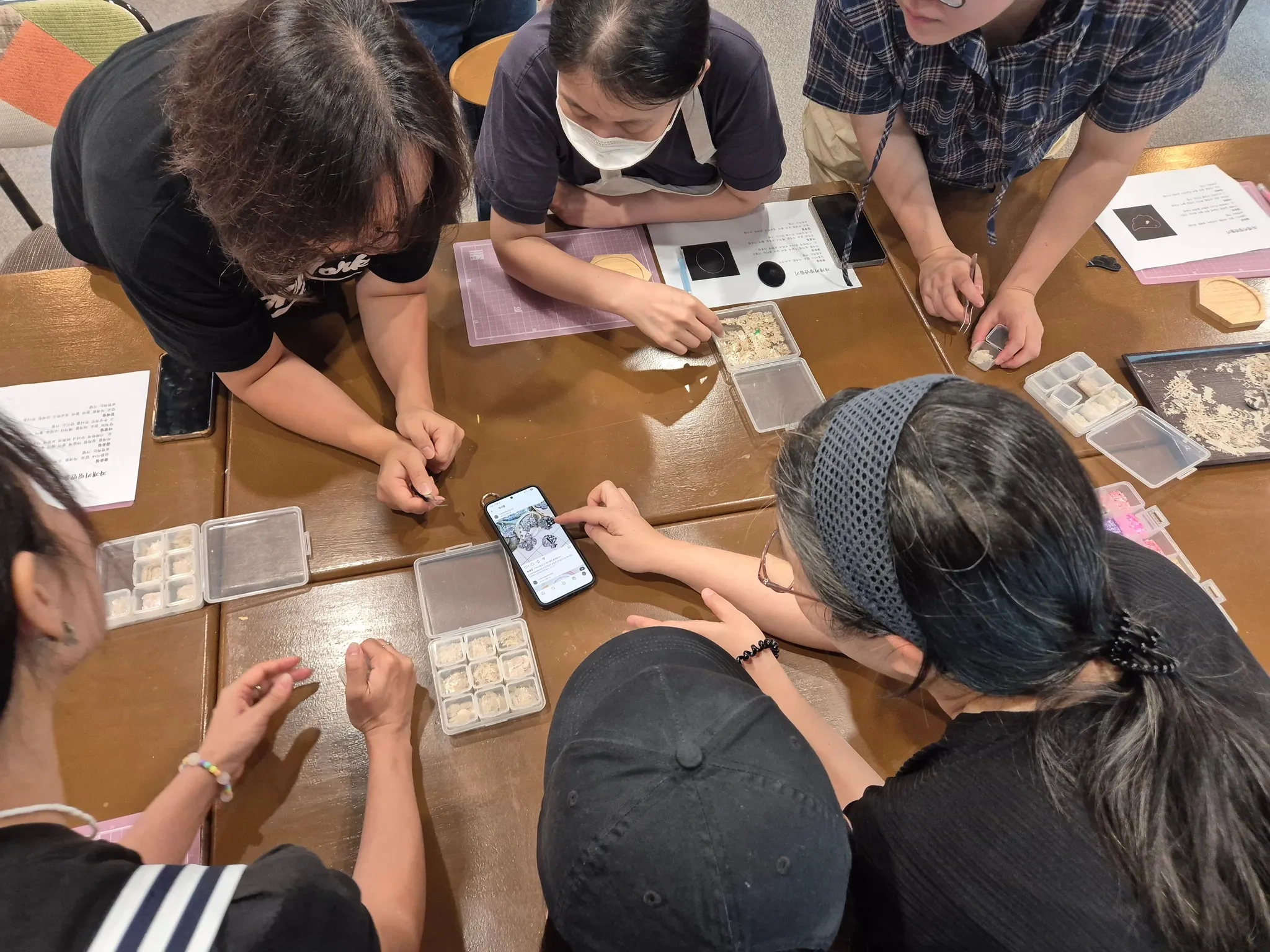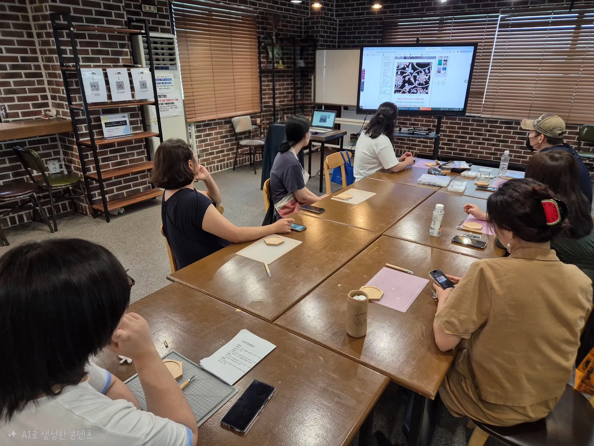 강사님이 자개의 종류와 특징, 그리고 오늘 만들 작품의 제작 과정에 대해 알기 쉽게 설명해 드립니다.