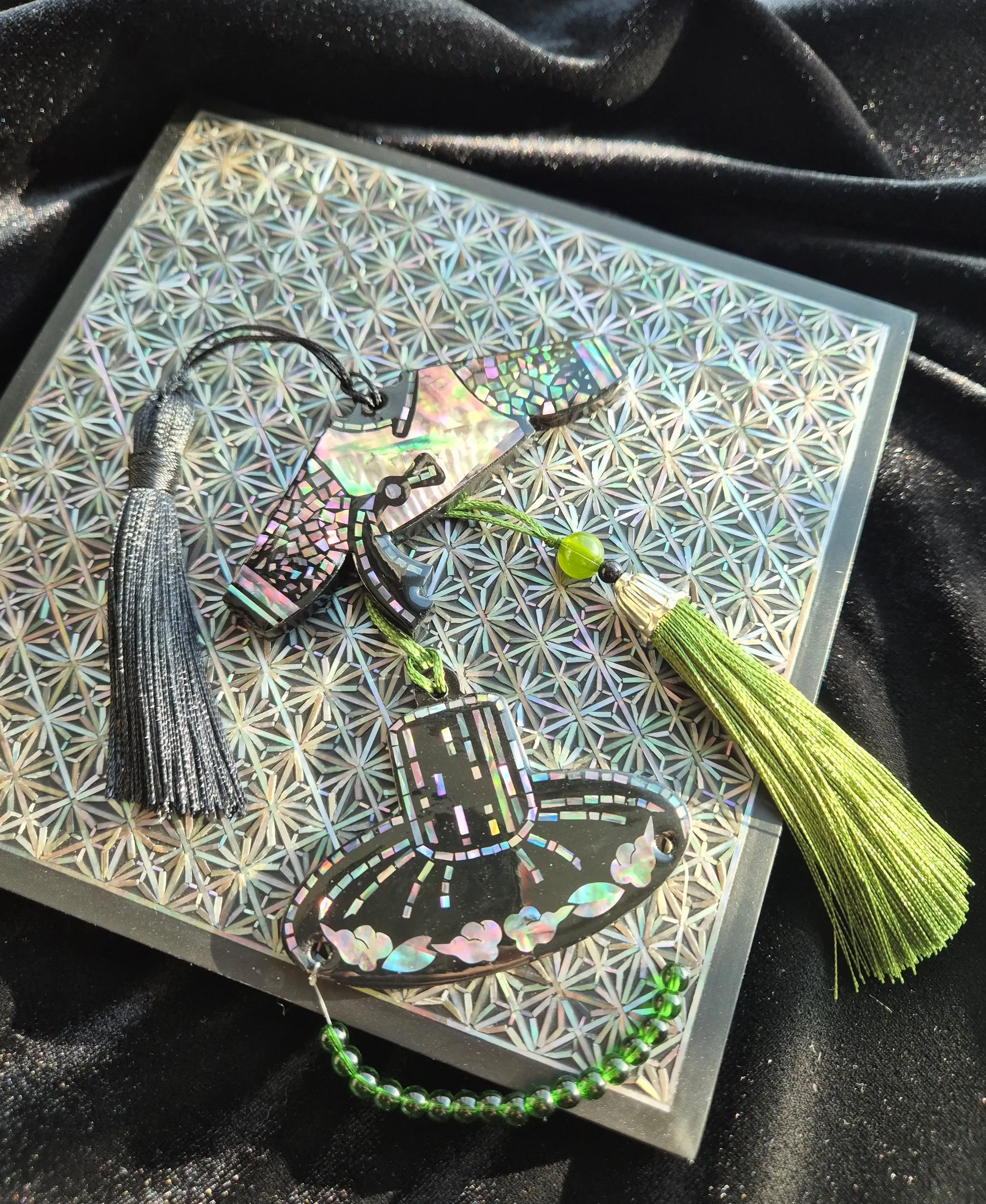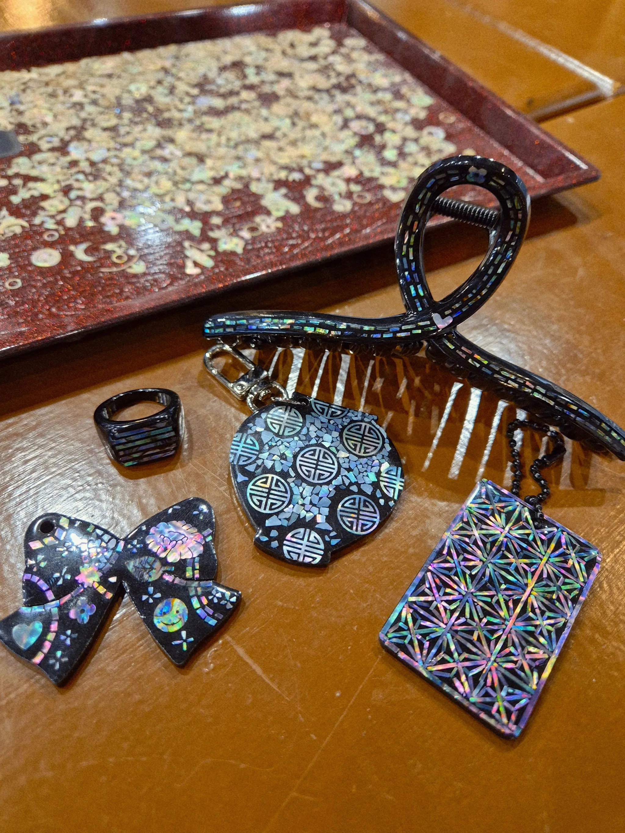 완성된 영롱한 자개 작품을 감상하고, 예쁘게 사진을 남기며 마무리합니다.