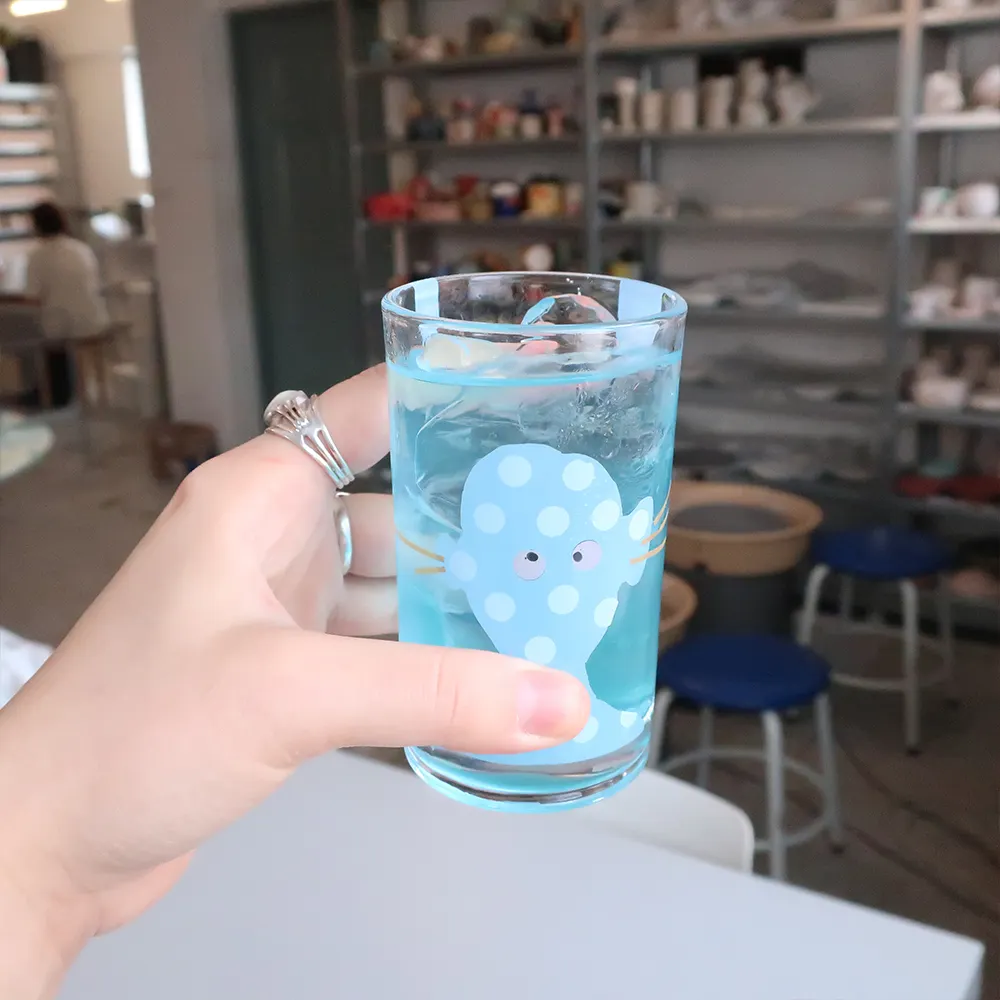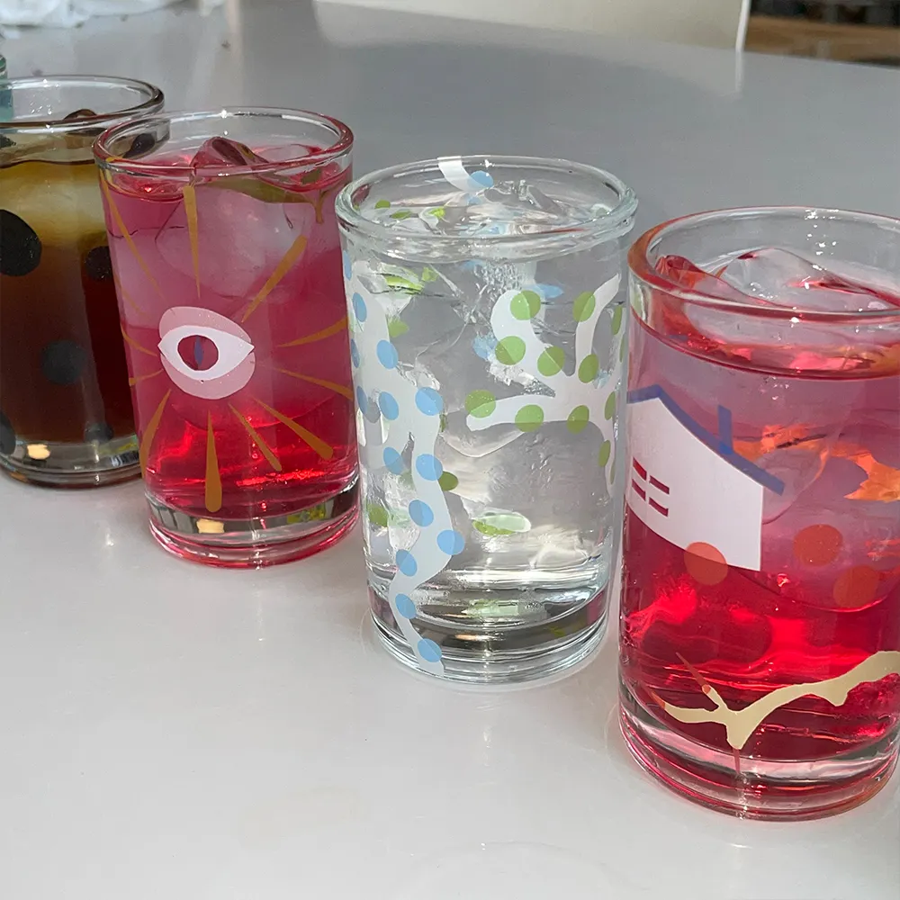 간단한 스케치와 결정한 도안을 유리잔에 적용합니다.