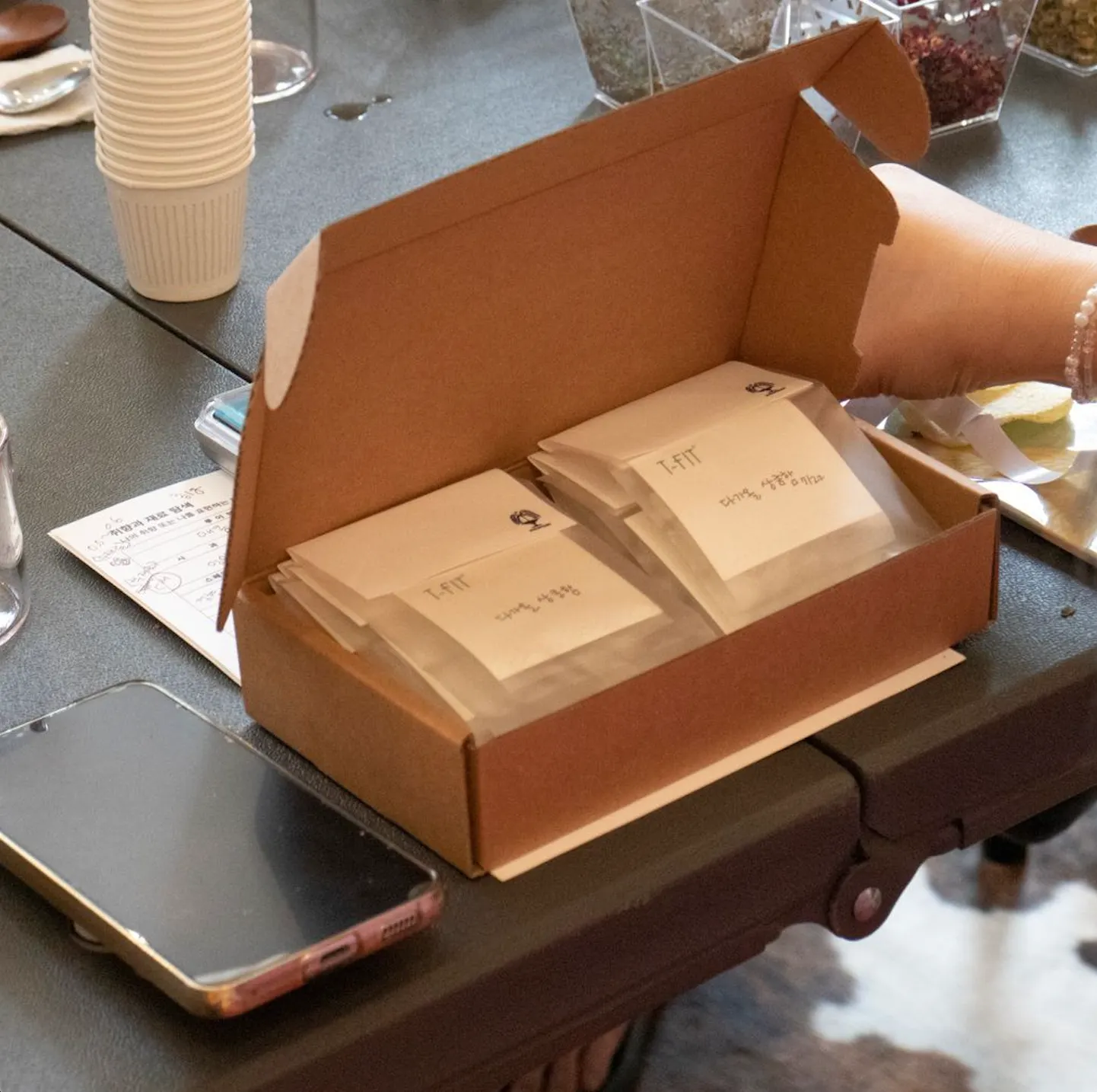 직접 블렌딩한 티 10개의 티백을 포장하여 가져갑니다.