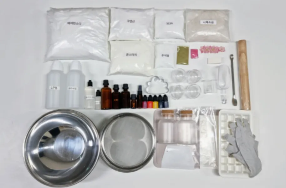 천연 소금, 에센셜 오일, 건조 꽃 등 다양한 천연 재료를 조합하여 개인의 취향에 맞는 입욕제를 제작할 수 있습니다.