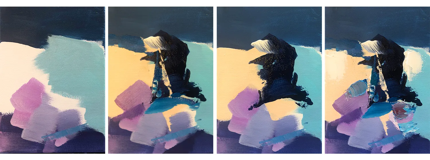 나이프와 빽붓 등 다양한 재료를 이용하여 추상작업 진행하기