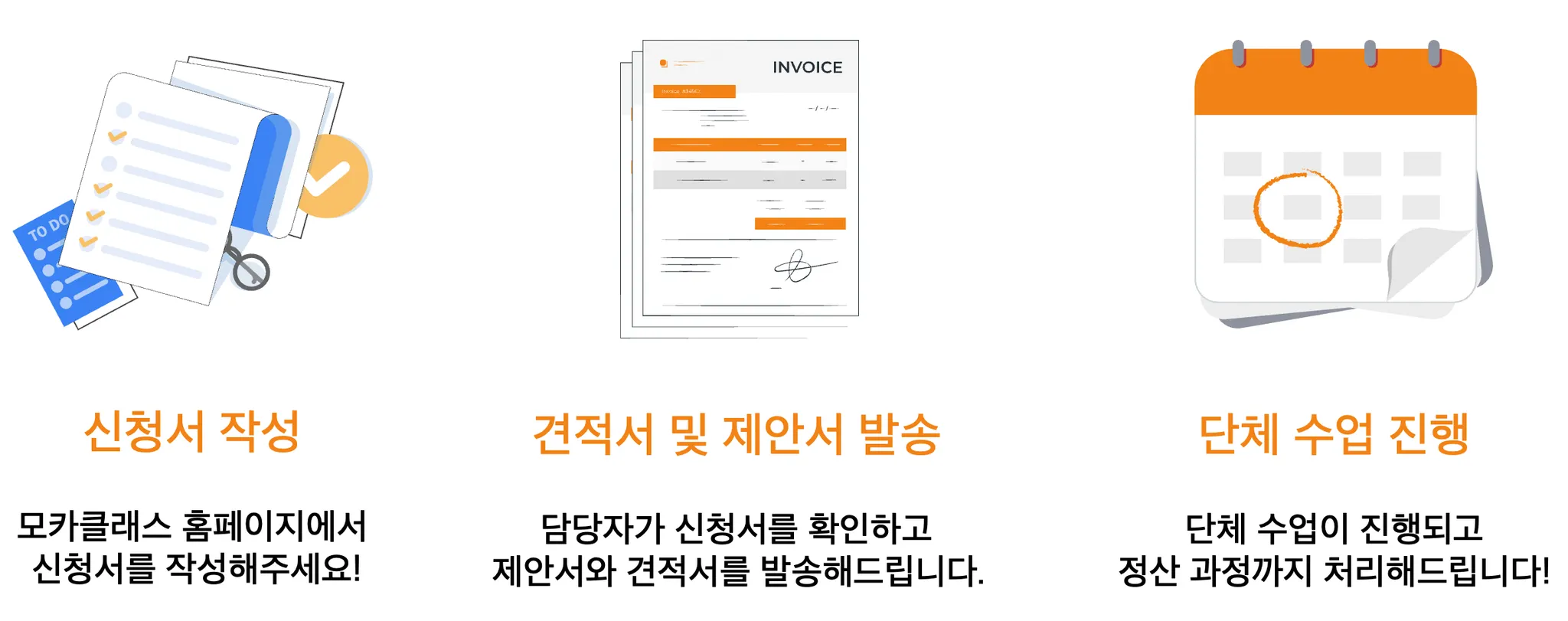단체 클래스 신청 및 진행은 한번에 간편하게 모카클래스에서
