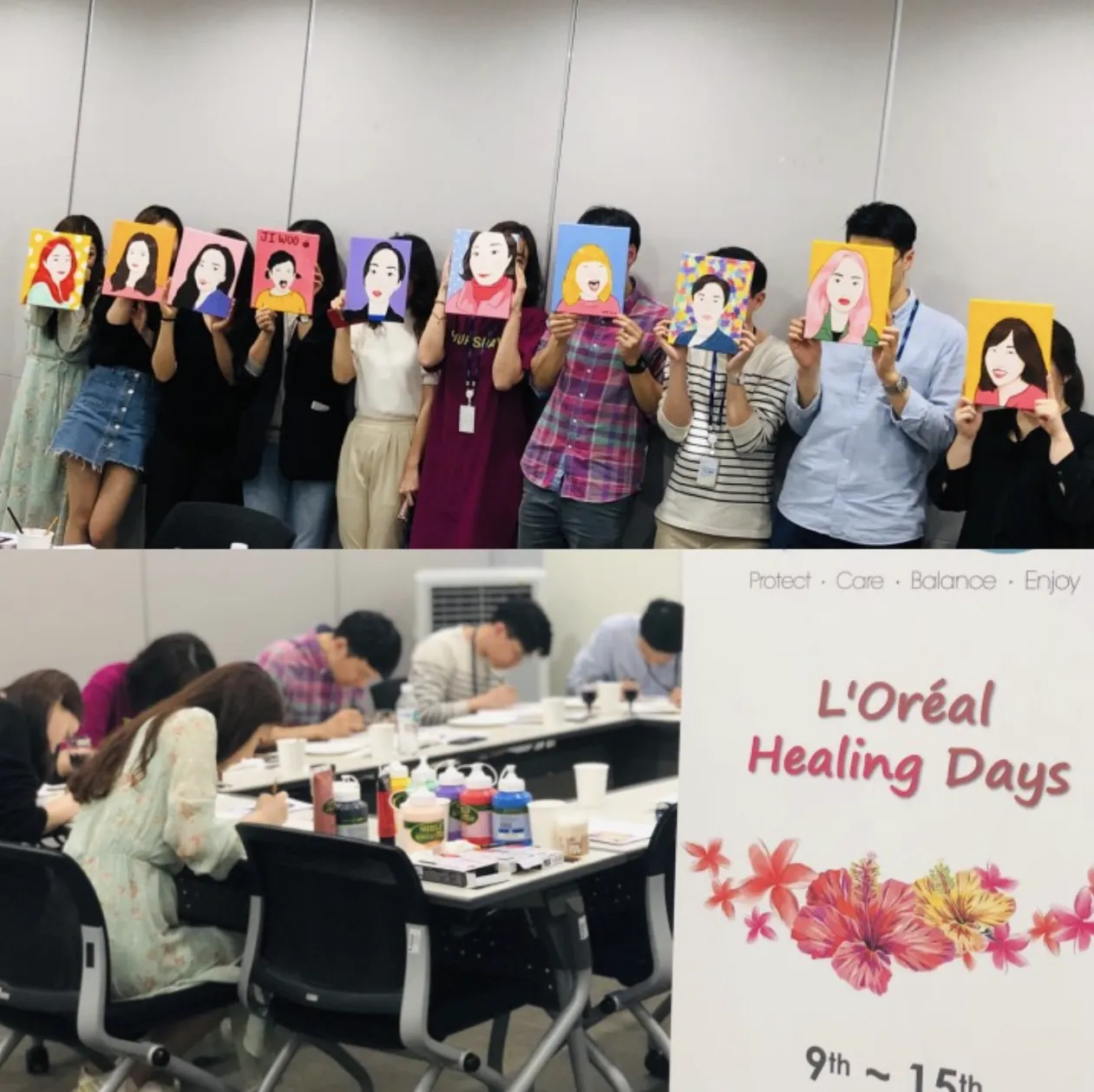 먼저 종이에 아크릴 물감을 이용해 색감+아이디어 샘플작업을 진행합니다 (클래스 종류에 따라 상이)