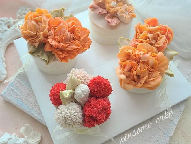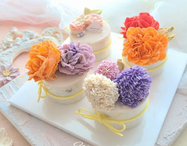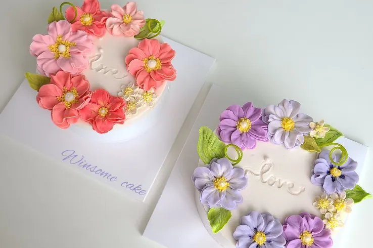 4) 예쁘게 피운 꽃으로 케이크 완성